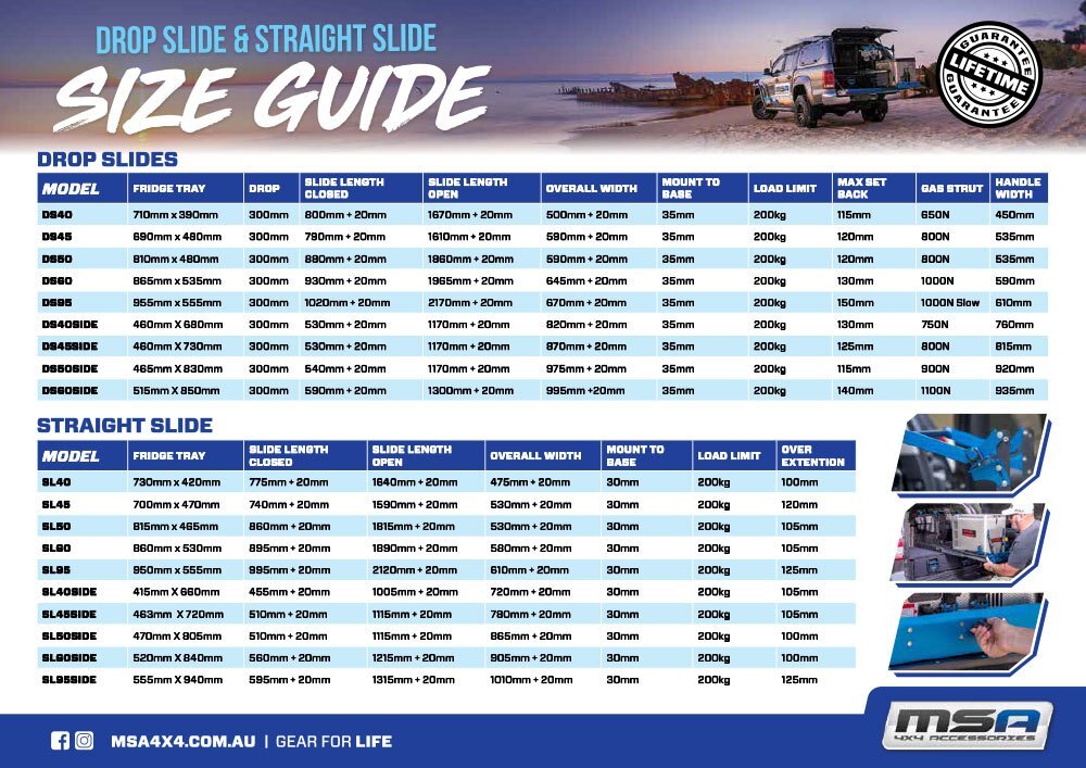 Experience the ultimate in fridge access and storage convenience with the MSA Drop Slide DS45. Whether you're embarking on a weekend getaway or a long-haul expedition, this drop slide ensures that your fridge contents are always within easy reach.